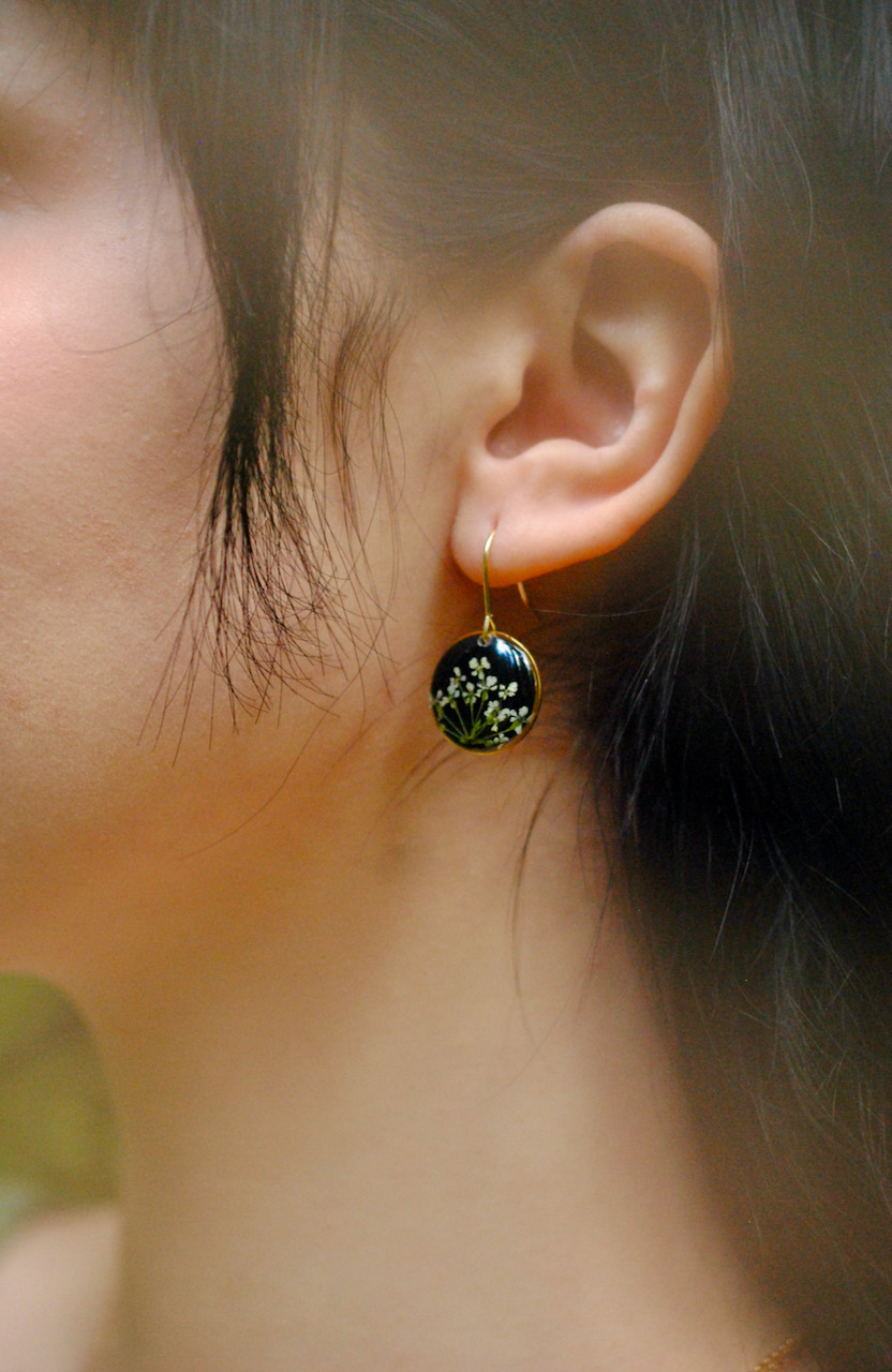 Kauniit korvakorut aidolla koiranputken kukalla.
