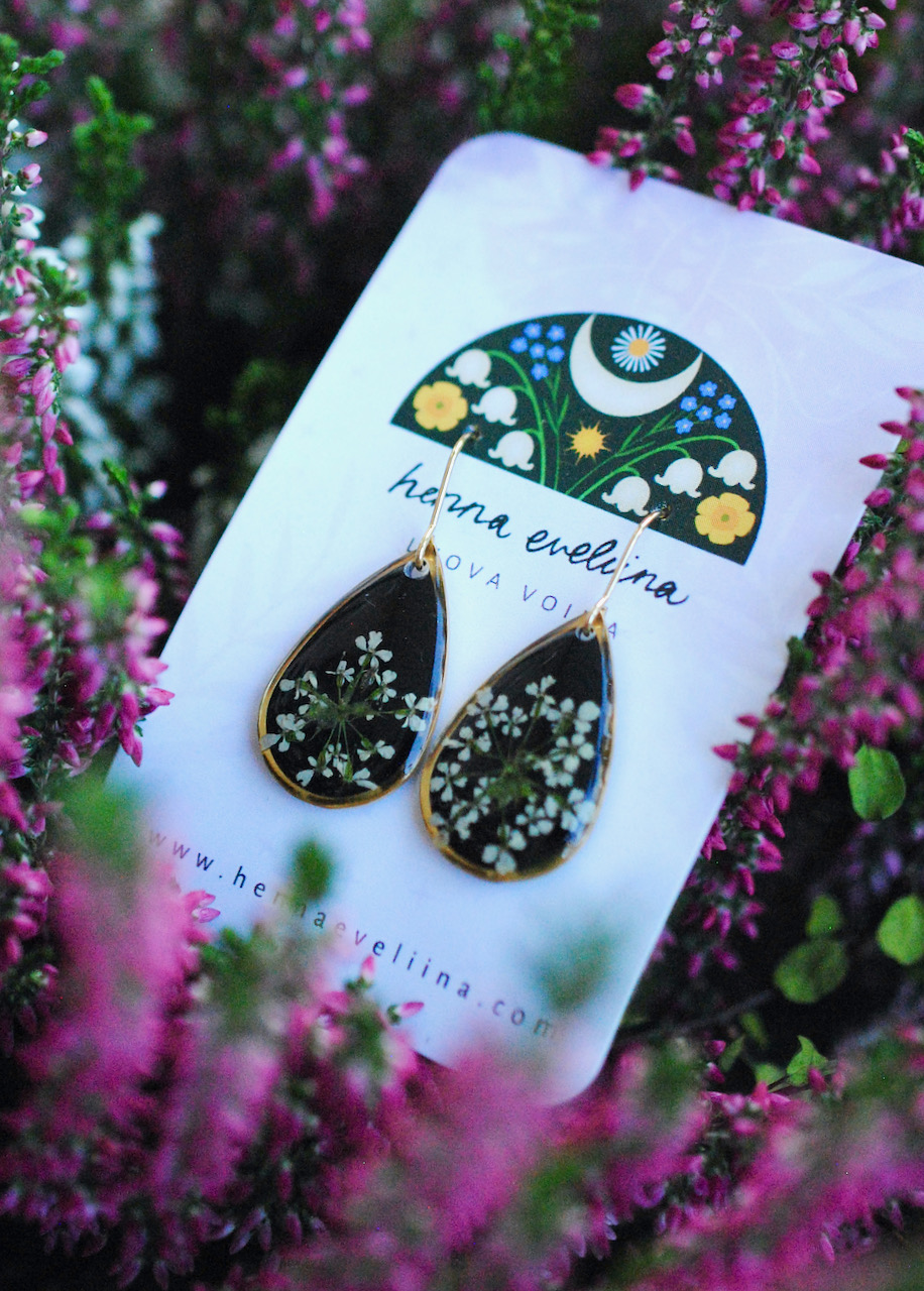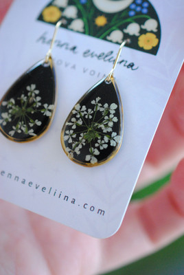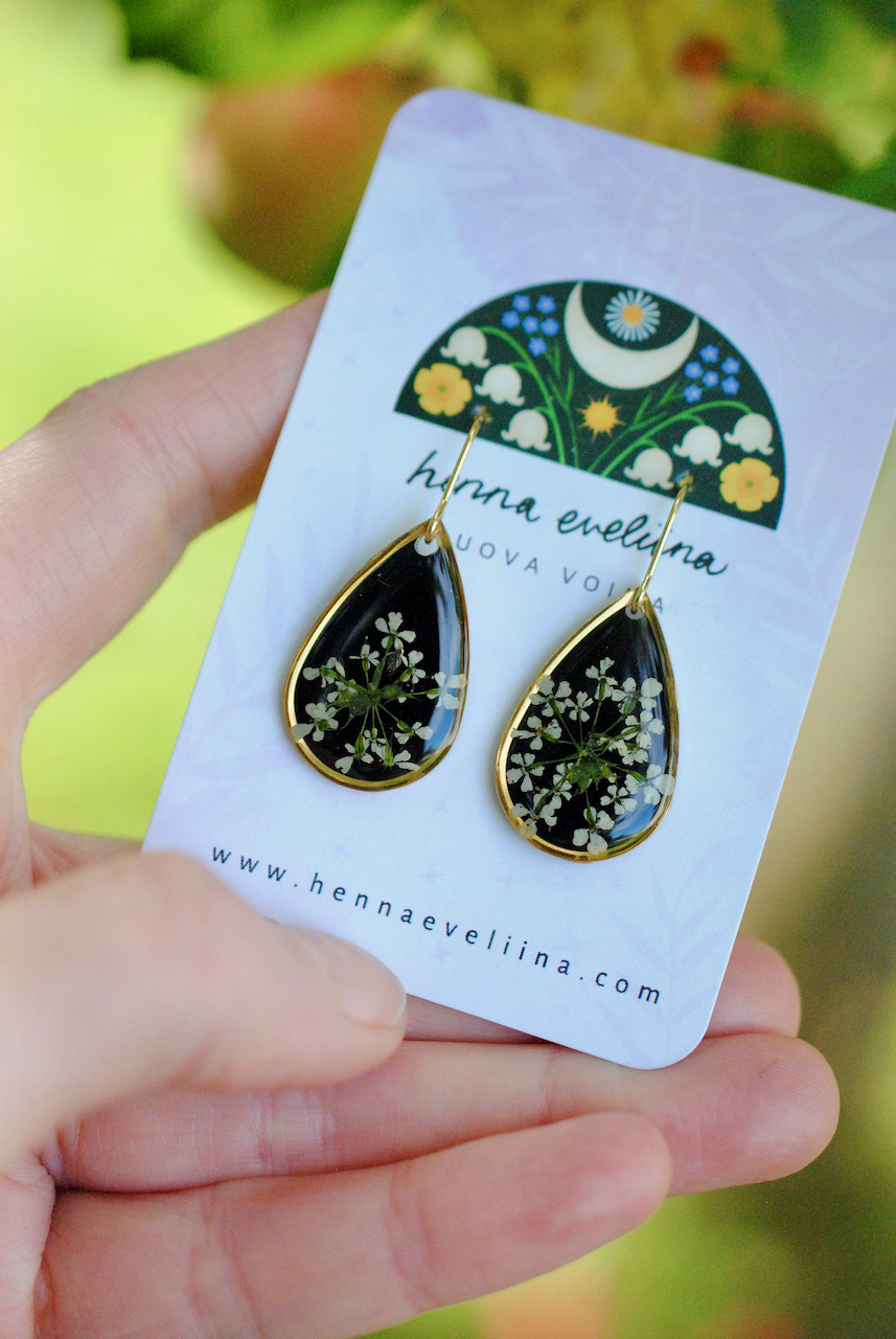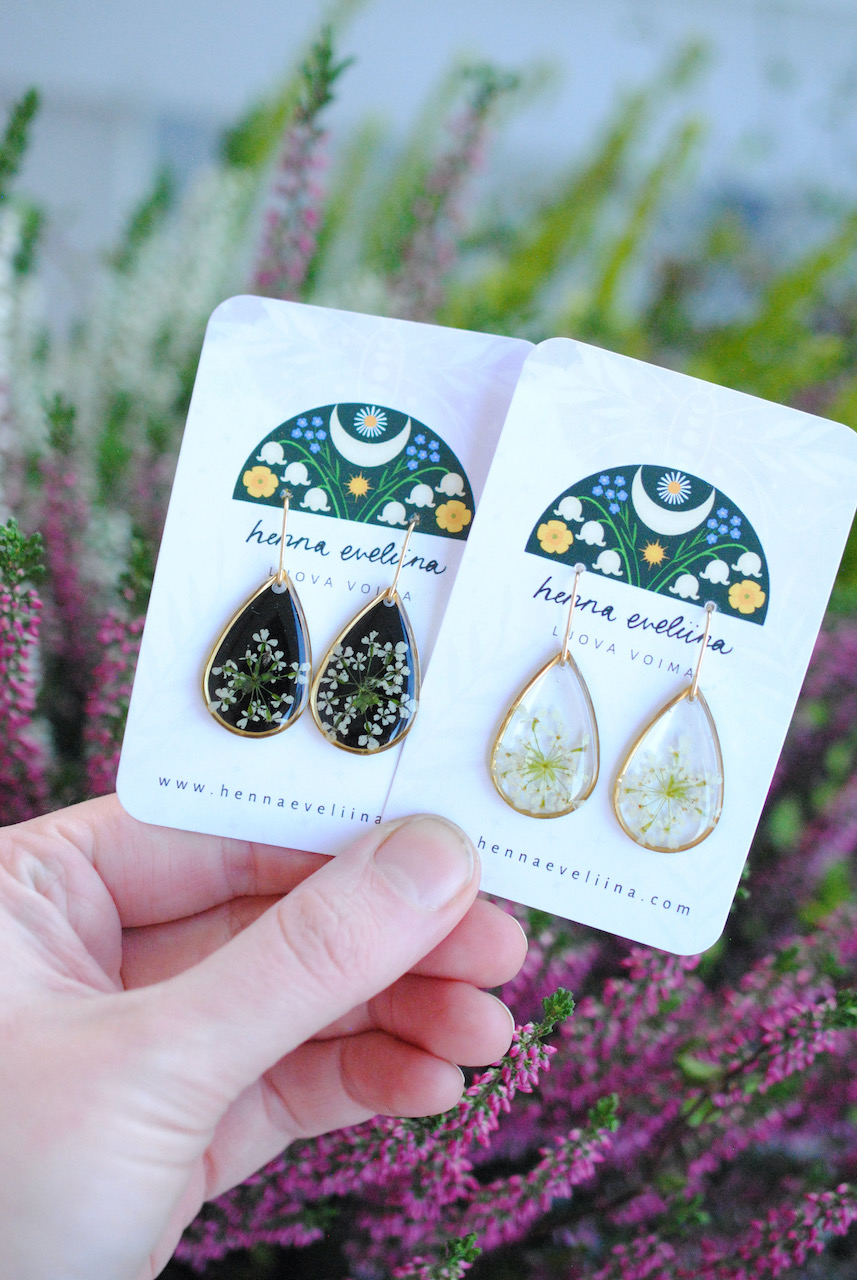 Näissä koruissa on käytetty aitoja Pohjois-Savon luonnosta poimittuja luonnonkukkia.