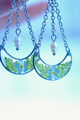 Näissä koruissa on käytetty aitoja Pohjois-Savon luonnosta poimittuja luonnonkukkia.