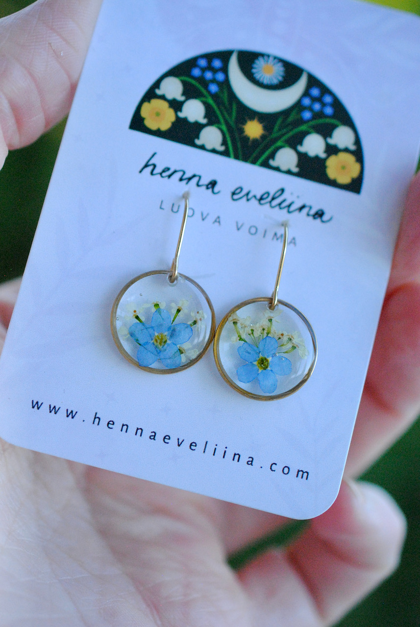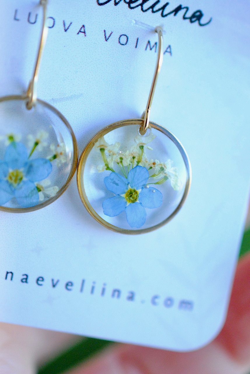 Näissä koruissa on käytetty aitoja Pohjois-Savon luonnosta poimittuja luonnonkukkia.
