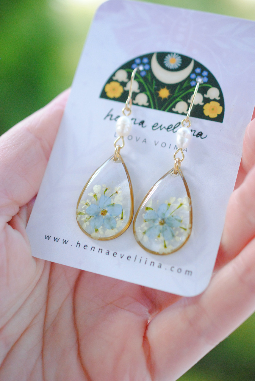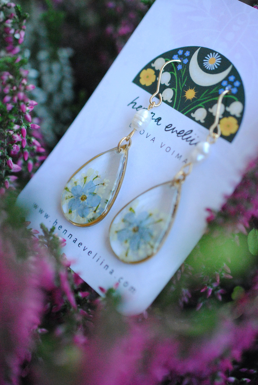 Näissä koruissa on käytetty aitoja Pohjois-Savon luonnosta poimittuja luonnonkukkia.