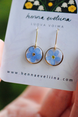 Näissä koruissa on käytetty aitoja Pohjois-Savon luonnosta poimittuja luonnonkukkia.