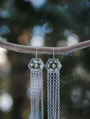 Kevään valoa kantavat Valotar-korvakorut ovat näyttävät, mutta äärimmäisen sirot ja kevyet. Sisältävät aitoja kukkia Suomen luonnosta.